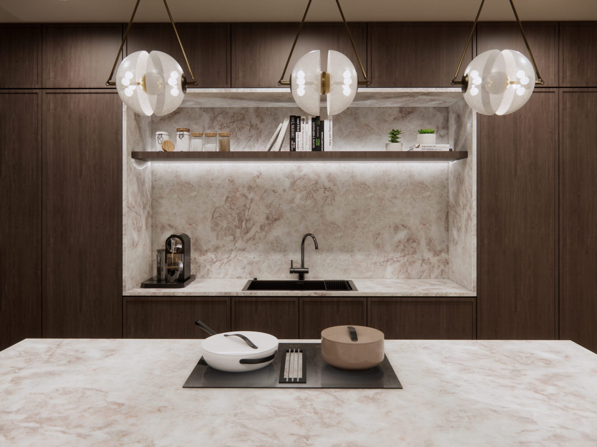 Natural textures, layered lighting and clean architectural lines define this project, delivering a sophisticated environment tailored for both family living and entertaining.
